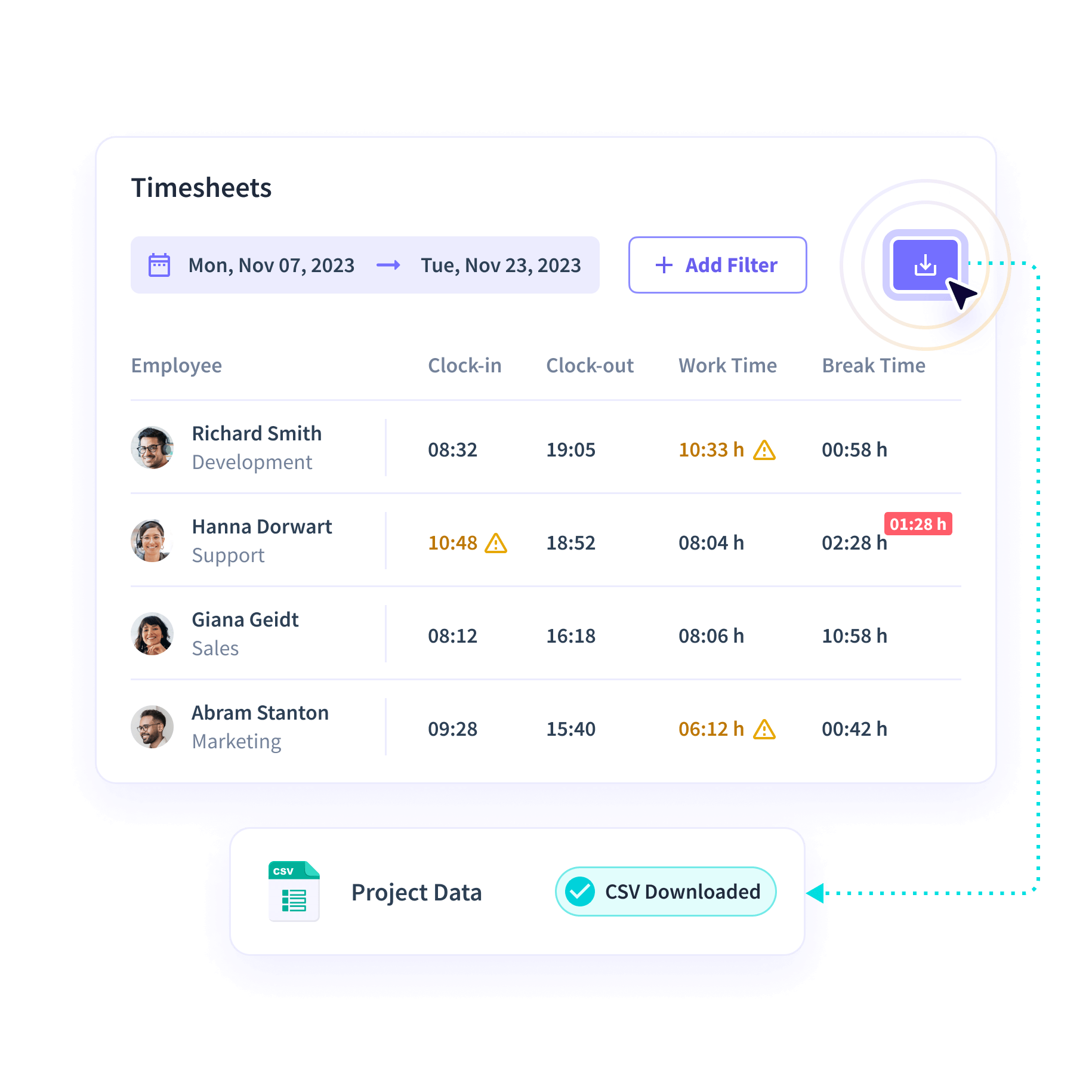 Capture every minute worked without the effort for pinpoint accurate timekeeping with an employee attendance monitoring system. Then export your time data for streamlined payroll or analyze it to find new ways to become more efficient.