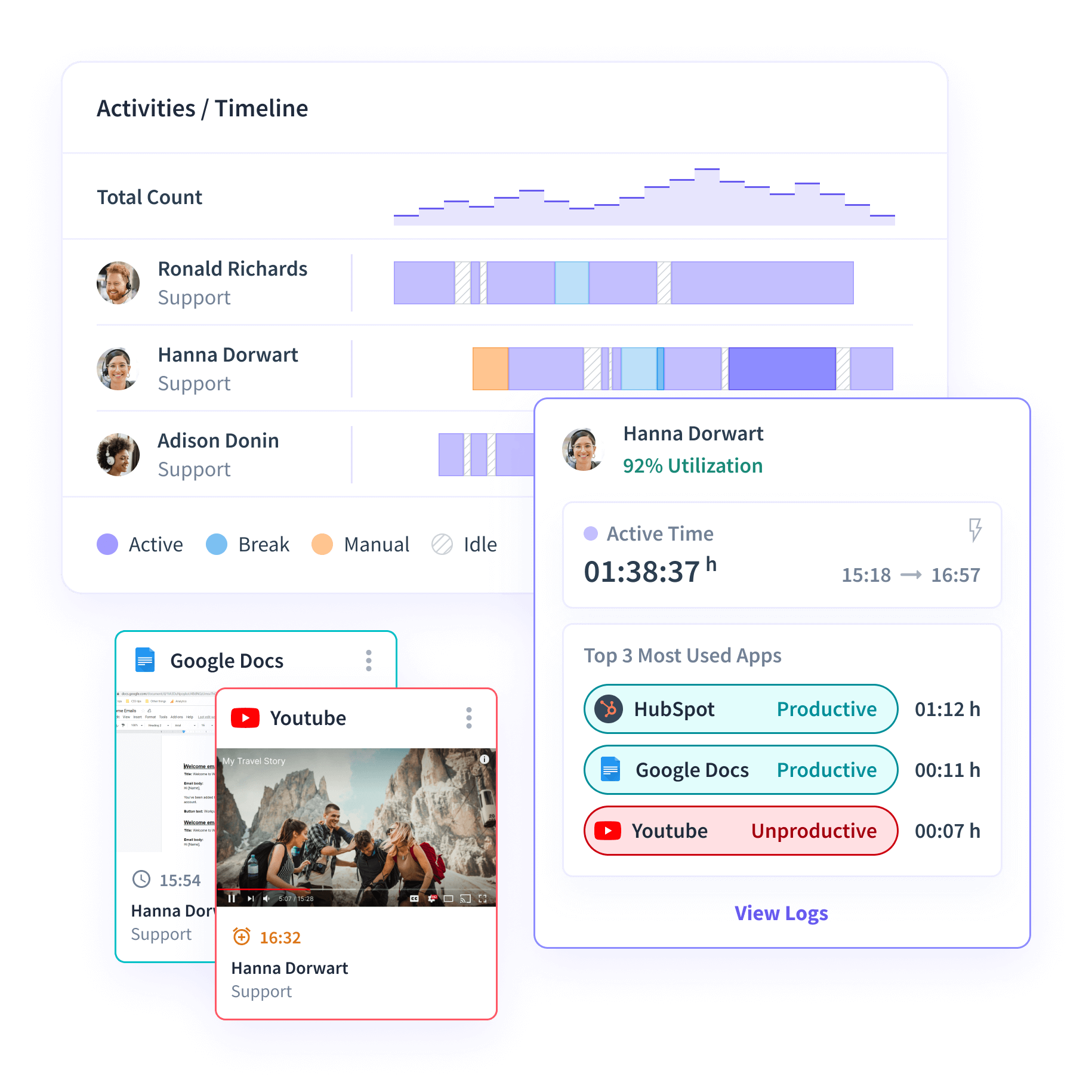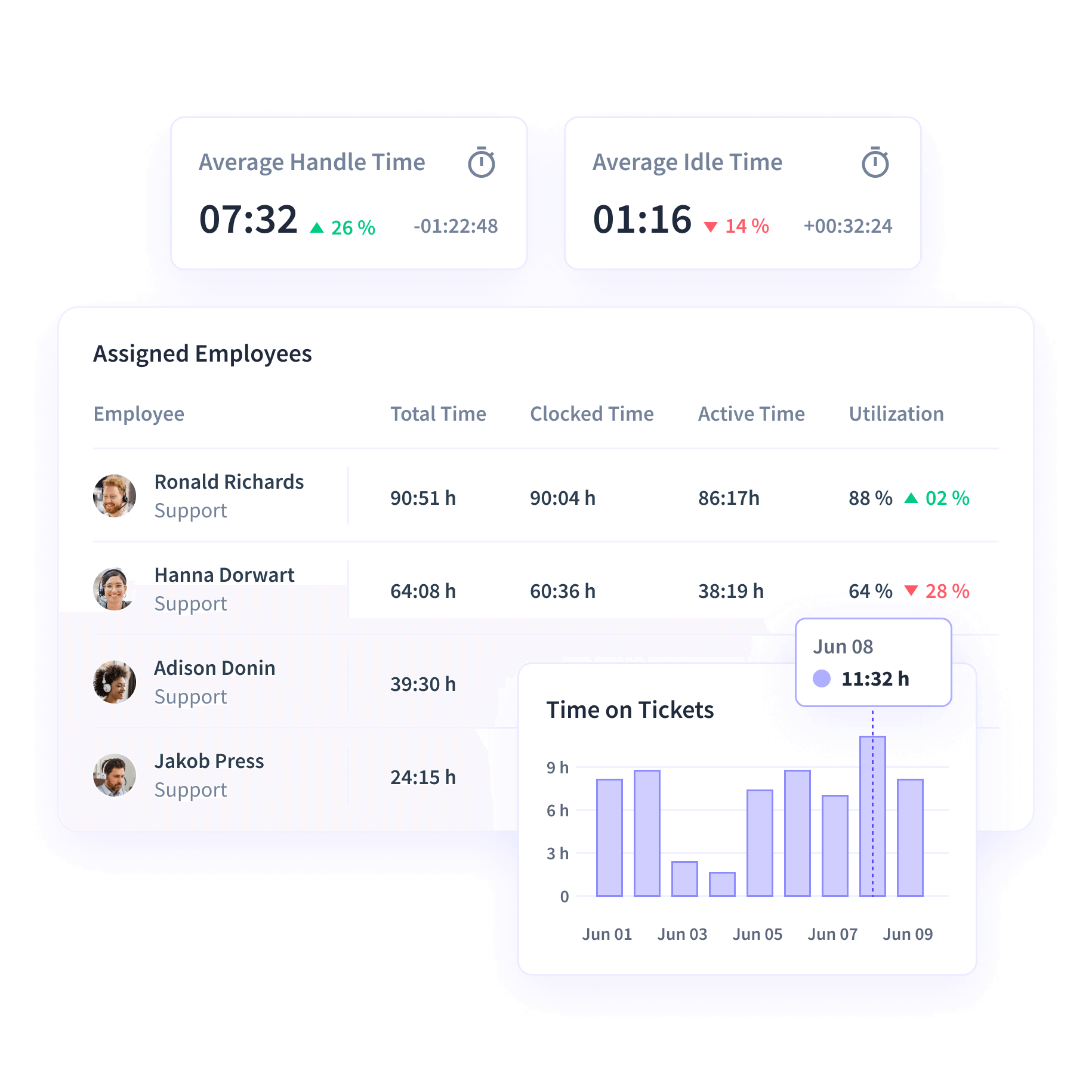 Insightful lets you see what employees are working on in real-time. This enables you to assess productivity, see the tickets employees are working on, and how they’re using their time.