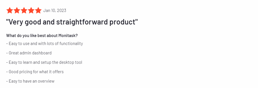 As Monitask is a relatively new player in the market, user reviews are still emerging. Preliminary feedback indicates a positive reception of the platform's features. Users have particularly appreciated the balance between comprehensive monitoring and respecting employee privacy. They also find the project management and budgeting features useful in managing remote teams.