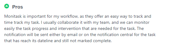 On Capterra, Monitask has been appreciated for its simplicity, ease of use, and thorough time tracking abilities. Users have particularly valued the customization options, accurate tracking, and visual display of time allocation by project: