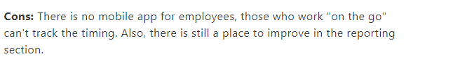 Some users on Capterra have expressed a need for additional features such as shift scheduling, a mobile app, and enhancements in reporting and visualization: