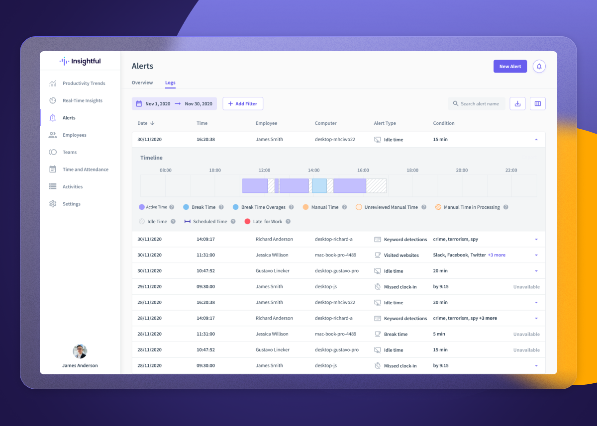 At Insightful, we continually seek innovative solutions to heighten the user experience and elevate organizational efficiency. With the demands of modern businesses in mind, we proudly present our newly developed feature: Insightful Alerts.