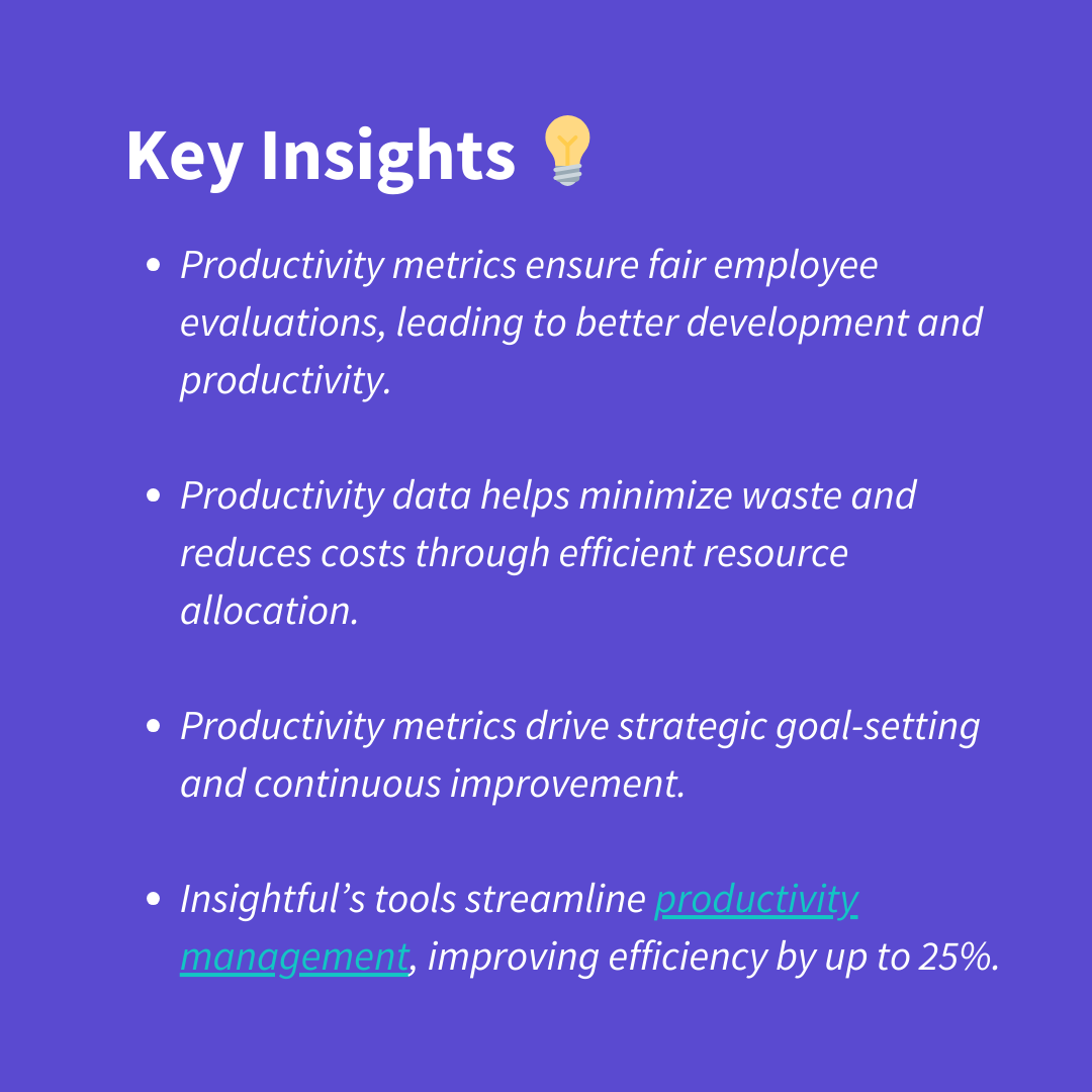 - Regularly analyze productivity metrics to gain insights into organizational performance and resource utilization.