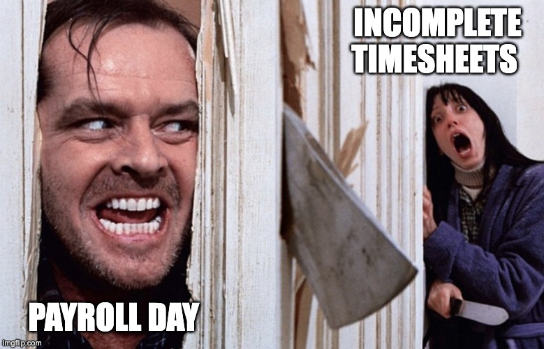 No hay nada peor que perder las hojas de tiempo, y este meme captura perfectamente el estrés al que se enfrentan los gerentes cuando faltan horas. Es como un dolor de cabeza para todo el equipo de nómina, porque cuando los empleados se olvidan, es su trabajo hacer frente a las consecuencias.