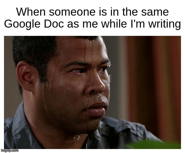 Nada aumenta más la ansiedad que ver cada pulsación de tecla en un Google Doc compartido. Intentas dejar que funcionen, pero ahora ambos dudan de cada palabra. Este meme refleja esa tensión incómoda y sudorosa de la colaboración en tiempo real.