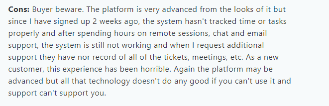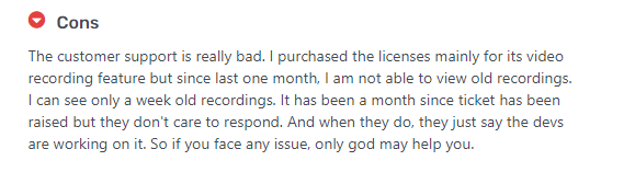 Si bien Teramind es elogiado por sus sólidas funciones y amplias capacidades de seguimiento, como todo el software, también tiene su parte de críticas.