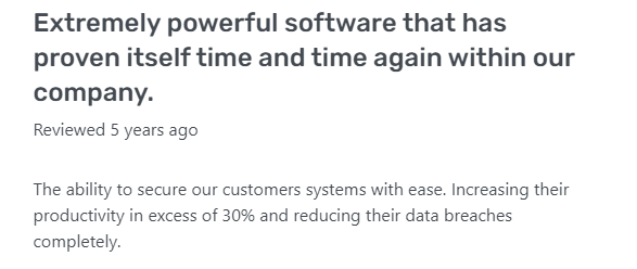 G2 Las reseñas reflejan sentimientos similares y elogian a Teramind por su variedad de funciones, facilidad de uso y funcionalidad. Los revisores han valorado aspectos como el seguimiento detallado de la actividad, la versatilidad de los informes y la capacidad de supervisar eficazmente a los empleados remotos: