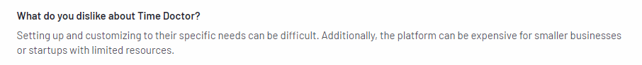 Usuarios en Capterra expresó que la herramienta puede parecer intrusiva, así como preocupaciones similares sobre las inconsistencias en el seguimiento del tiempo.
