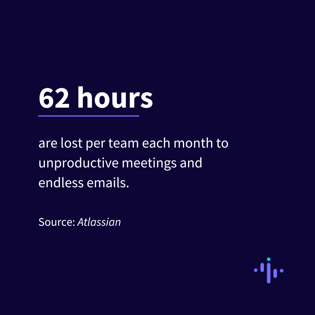 Muchas organizaciones cometen el error de confiar demasiado en las reuniones y el correo electrónico para comunicarse. Los empleados pierden hasta 31 horas al mes en reuniones improductivas, y el 28% de la jornada laboral se dedica a los correos electrónicos.