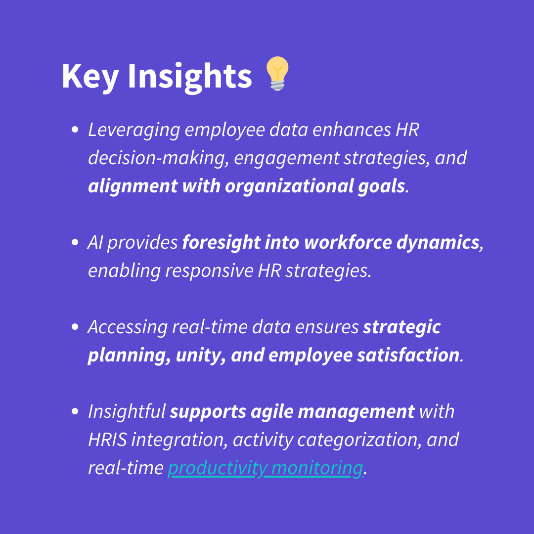 Con su interfaz intuitiva y su configuración personalizable, Insightful está diseñado para adaptarse a las necesidades únicas de cualquier organización, lo que lo convierte en una herramienta esencial para obtener análisis de personas procesables y fomentar una fuerza laboral ágil.