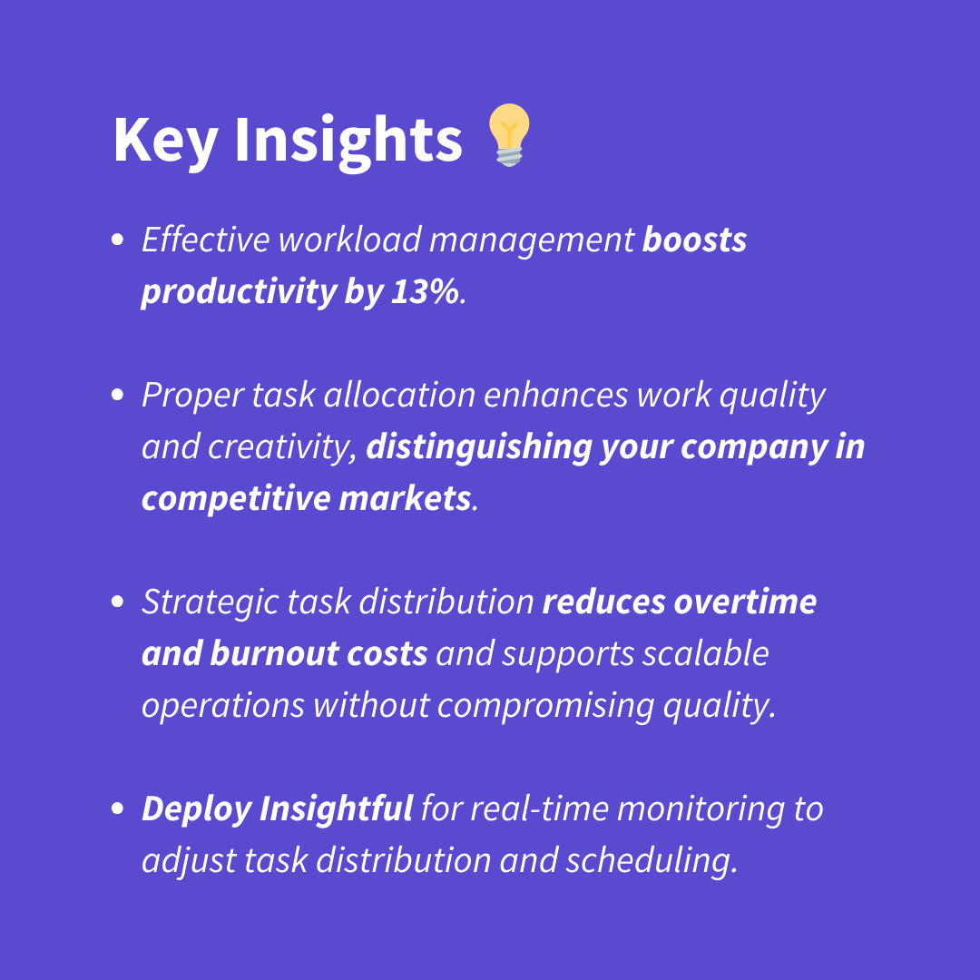 En este blog, describiremos cómo se pueden aprovechar herramientas como el software de seguimiento del tiempo de trabajo de Insightful para distribuir las tareas de manera eficiente entre su equipo, mejorar la satisfacción laboral y reducir los gastos generales mediante la gestión estratégica de la carga de trabajo.