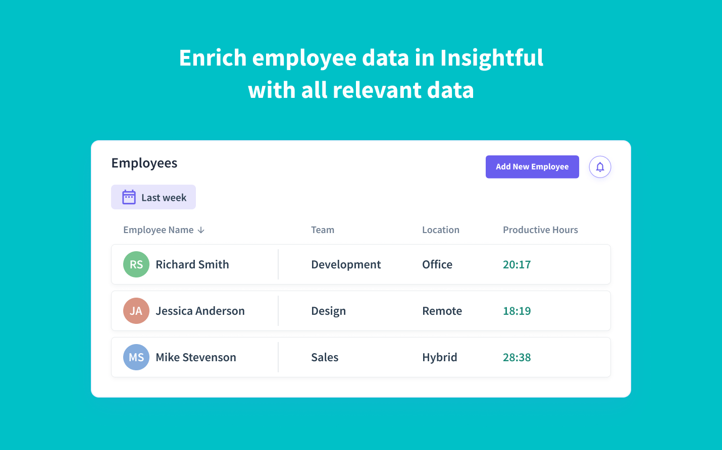 Esta integración le permite responder fácilmente a los cambios en la información de los empleados. Ya sea que reciban un ascenso o abandonen la empresa, puedes ver estos datos reflejados en Insightful.