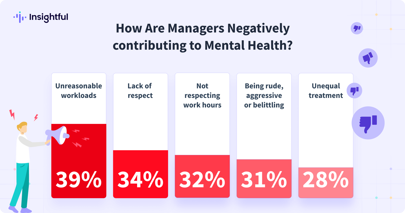 Esta trifecta de factores estresantes es una receta para un entorno de alta presión en el que los empleados se sienten abrumados por la creciente demanda. Con un tiempo de inactividad limitado y dificultades para desconectarse del trabajo, muchos están a punto de agotarse. Esto explica el equilibrio constante que deben mantener los gerentes: mantener un entorno de alto rendimiento sin crear demandas que afecten negativamente a la productividad.