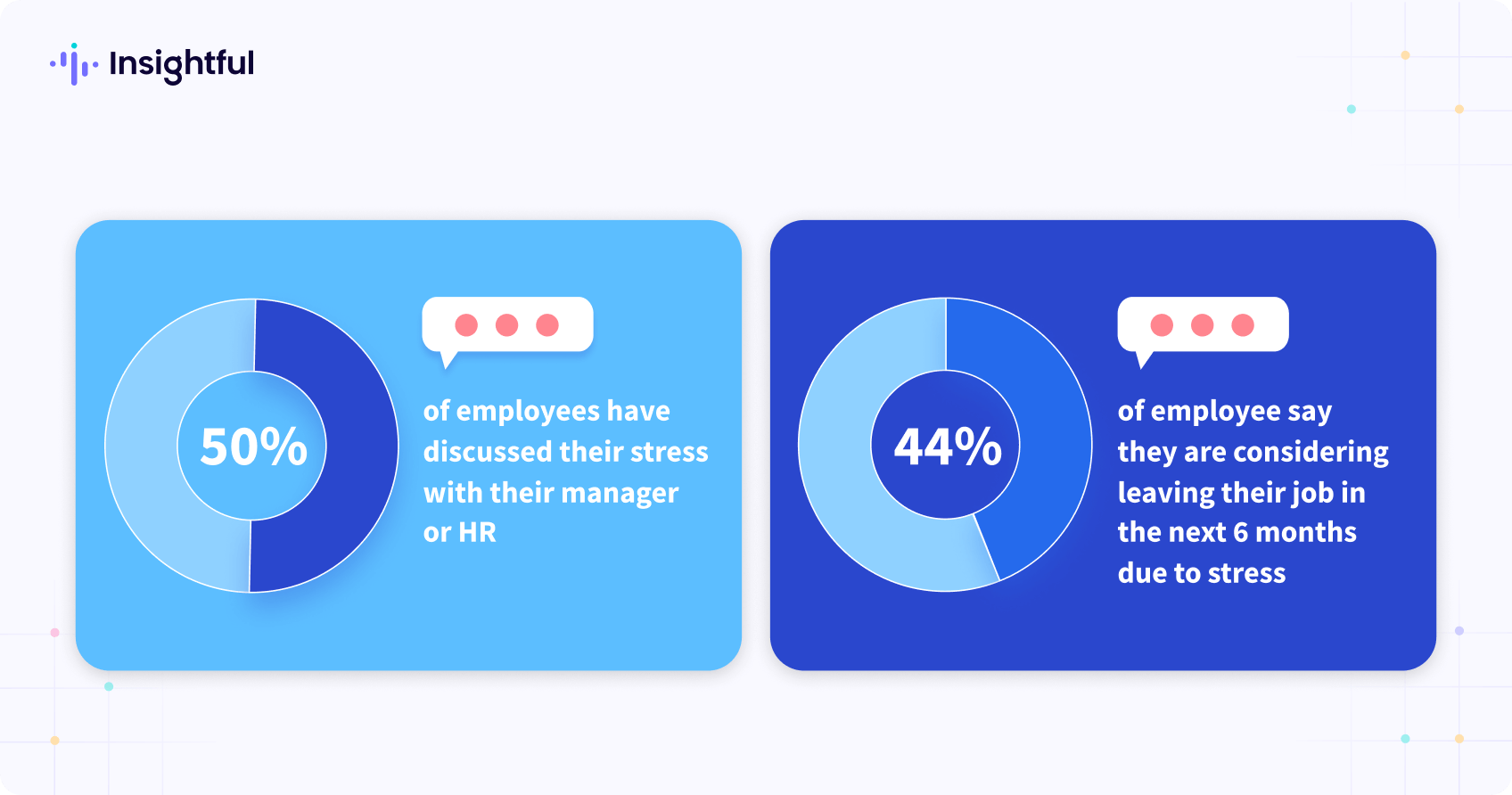 Aún más preocupante, El 44% de los empleados está considerando activamente dejar sus trabajos en los próximos seis meses debido al estrés, y el 50% ha hablado sobre su estrés con su gerente o con el departamento de Recursos Humanos.