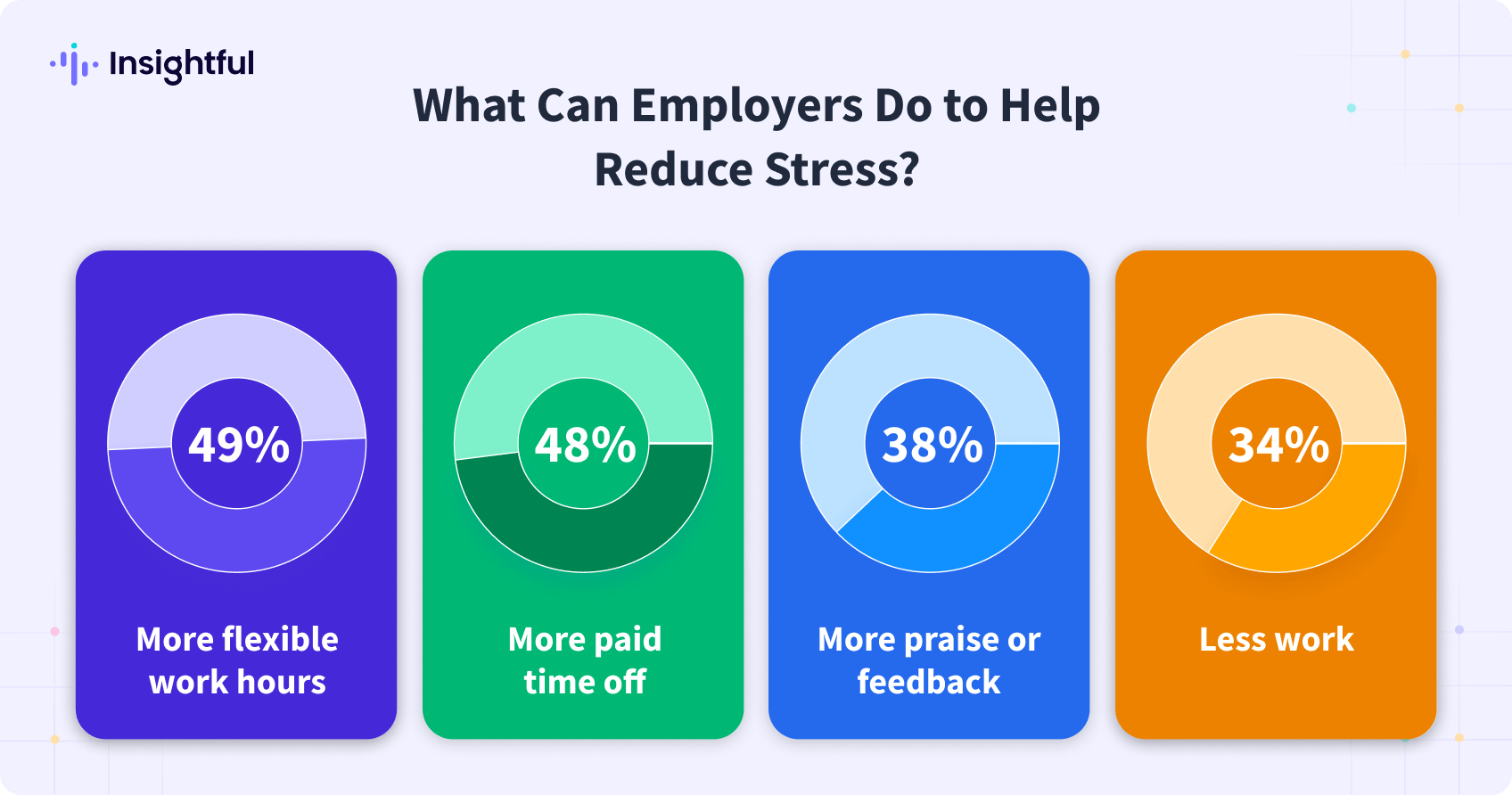 La mitad de los empleados cree que los arreglos laborales más flexibles, como el trabajo remoto o los horarios flexibles, son clave para reducir el estrés. Esto indica que los beneficios por sí solos ya no son suficientes: los empleados necesitan más autonomía y control sobre sus horarios para gestionar mejor el equilibrio entre la vida laboral y personal y reducir la fatiga.
