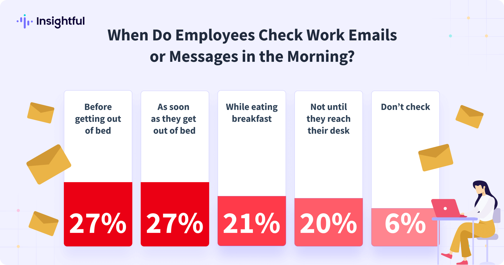 Para muchos, este estrés comienza incluso antes de que comience la jornada laboral, con El 27% de los empleados admiten que revisan sus correos electrónicos o mensajes de trabajo mientras aún están en la cama. Si bien estos modos de comunicación son necesarios, un aluvión descontrolado de notificaciones puede erosionar rápidamente la frontera entre el trabajo y la vida personal, dejando a los empleados con poco espacio para relajarse.