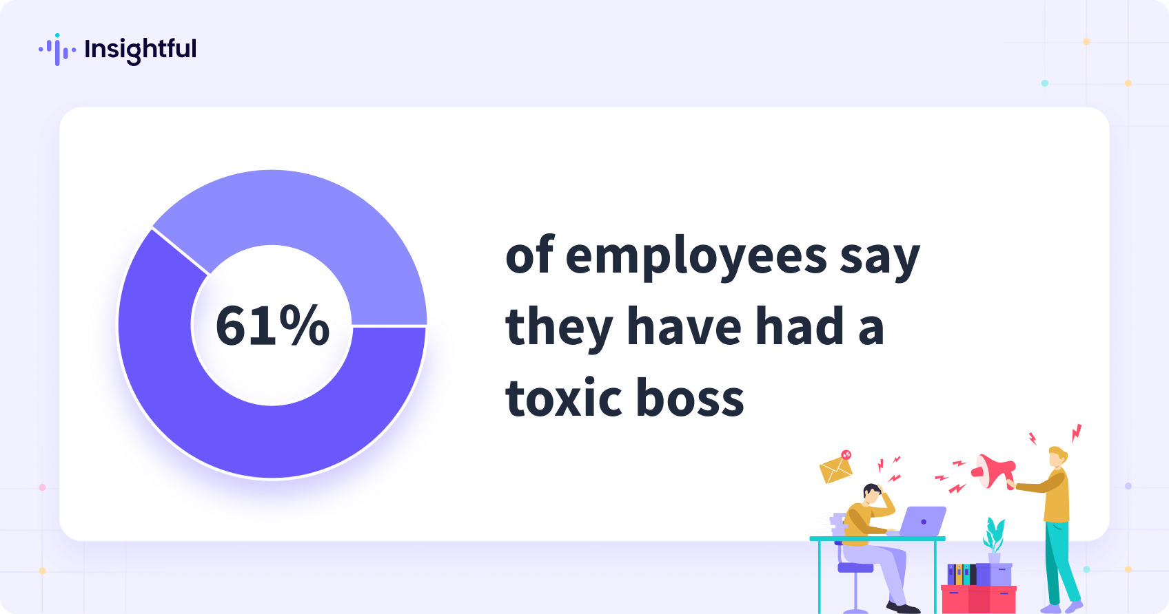 En términos más generales, El 61% de los empleados dicen que han tenido un jefe tóxico, definida por una combinación de falta de respeto, menosprecio y exigencias poco realistas. Los estilos de liderazgo tóxicos contribuyen sin duda a una mala cultura empresarial que agota la moral y el compromiso. Las ideas de este informe tienen como objetivo arrojar luz sobre el estrés laboral y promover la empatía entre empleados y empleadores.
