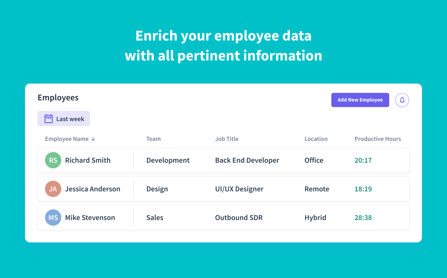 Once you have your enriched employee data in Insightful, the integration will assign individuals to their respective teams so you can hit the ground running and start tracking productivity.